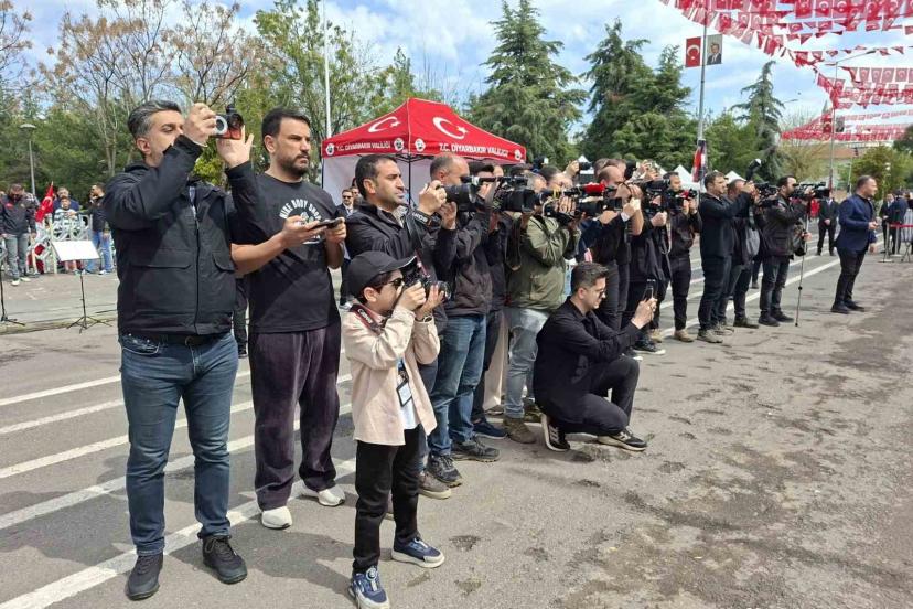 Diyarbakır’da 23 Nisan Ulusal Egemenlik ve Çocuk Bayramı dolayısıyla düzenlenen kutlamalar, renkli görüntülere de sahne oldu. Yenişehir ilçesinde valilik binası önünde gerçekleştirilen törenlerde, henüz 6 yaşında olan İbrahim Efe Irmak isimli çocuk, elindeki fotoğraf makinesiyle adeta profesyonel bir gazeteci gibi görev yaptı. Kutlama alanında gazetecilerle birlikte hareket eden minik İbrahim Efe, boynuna astığı fotoğraf makinesiyle tören boyunca sahnedeki etkinlikleri, protokol üyelerini ve vatandaşların coşkulu anlarını fotoğrafladı. Protokol üyeleri de İbrahim Efe’nin çalışmasına kayıtsız kalmayarak kendisi ile hatıra fotoğrafı çektirdi.