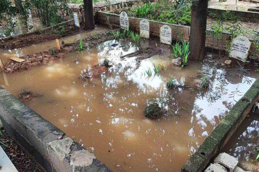 Yağışların ardından mezarlık içerisindeki su birikintilerinin giderilmesi için çalışma yapılmasını isteyen vatandaşlar, mezarlığın bakım ve altyapısının iyileştirilmesini talep etti.