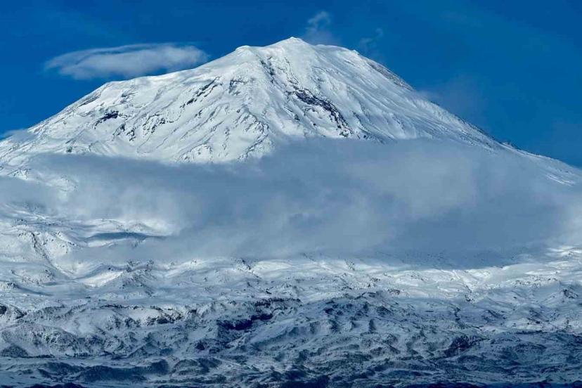 "Türkiye’nin çatısı" olarak bilinen Ağrı Dağı, zirvesindeki beyaz örtüsüyle göz kamaştırıyor.