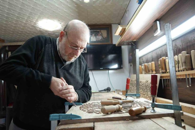 Ailesinin asırlık sanatını evinin kilerinde yaşatıyor: Ayetleri ahşaba ilmek ilmek işliyor