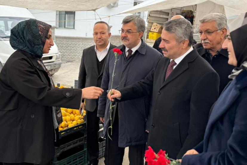 Kadınların toplumdaki yeri ve önemine vurgu yapan Milletvekili Mustafa Alkayış, "Kadınlarımız aileyi kuşatan merhameti, nesilleri yetiştiren sabrı ve emeğiyle hayatı güzelleştiren en büyük güçtür. Bugün 8 Mart Dünya Kadınlar Günü vesilesiyle pazar esnafımız ve kadın vatandaşlarımıza karanfil takdim etmekten büyük mutluluk duyuyorum. Kadınlarımıza her zaman saygı ve hürmetle yaklaşmak, medeniyet anlayışımızın en temel değerlerindendir. Başta şehit anneleri ve şehit eşleri olmak üzere tüm kadınların 8 Mart Dünya Kadınlar Günü’nü kutluyorum" diye konuştu.
