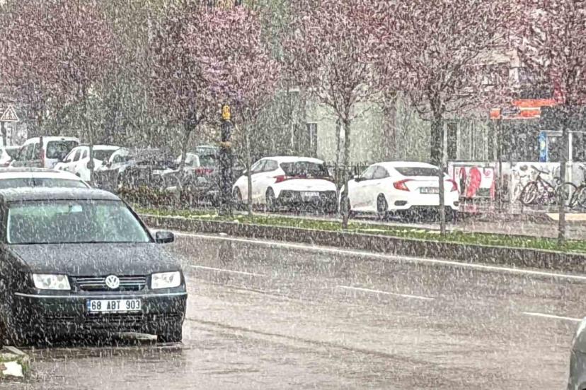 Aksaray’da günlerdir aralıklarla süren yağmur yağışları bugün yerini kar yağışına bıraktı. Şehirde aniden bastıran kar yağışı çiçek açmış ağaçlarla birlikte iki mevsimin güzelliğini bir arada sahneledi.