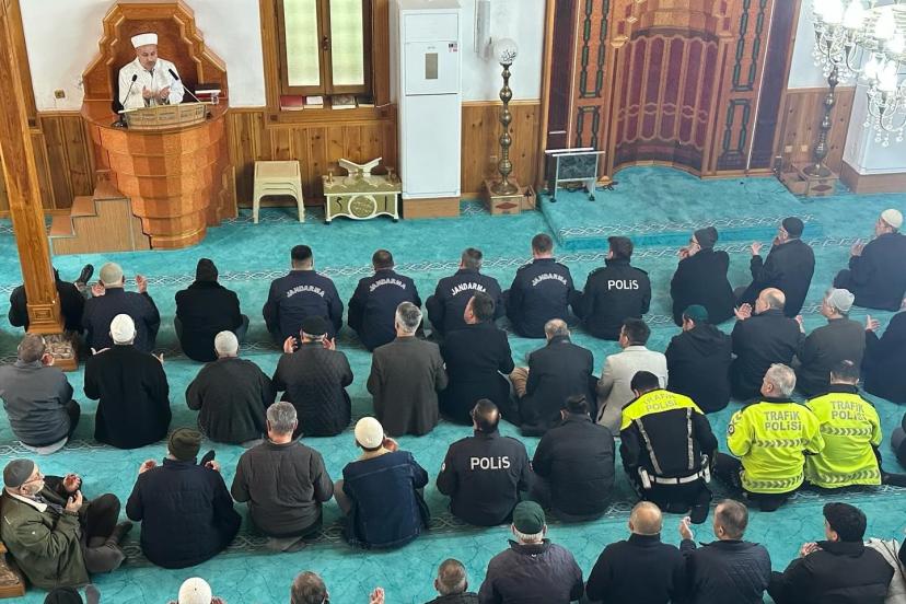 Alaplı Merkez Camii’nde gerçekleştirilen programda, Alaplı İlçe Müftülüğü din görevlileri tarafından okunan 450 Hatm-i Şerif, Cuma namazı öncesinde yapılan programla şehitlerin ruhuna bağışlandı.