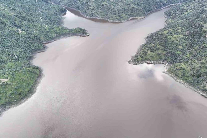 Aydın’ın Karpuzlu ilçesinde bulunan Yaylakavak Barajı son yağışlarla birlikte dolarken, barajdaki son durum dron ile havadan görüntülendi.
