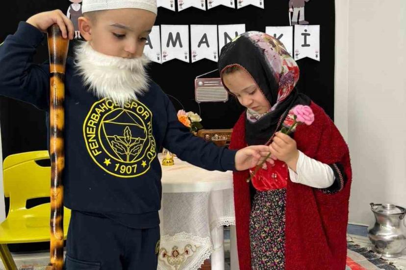 Okulda organize edilen etkinlikte öğrenciler, yaşlılık temalı canlandırmalarla geçmiş yaşam kültürüne ilişkin sunumlar yaptı. Etkinlik alanında nostaljik ev yaşamını yansıtan çeşitli objeler kullanıldı.