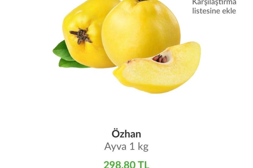 Bursa’daki bir markette ayvanın kilosu 298,80 liradan satışa sunuldu. Başka bir markette kilosu 258,99 lira olan ayva, diğerlerinde 150 ila 200 lira arasında alıcı buldu.
