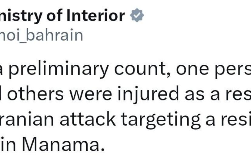 Bahreyn İçişleri Bakanlığı, ülkenin başkenti Manama’daki sivil bir binayı hedef alan İran saldırısında 1 kişinin hayatını kaybettiğini ve yaralananların olduğunu açıkladı.