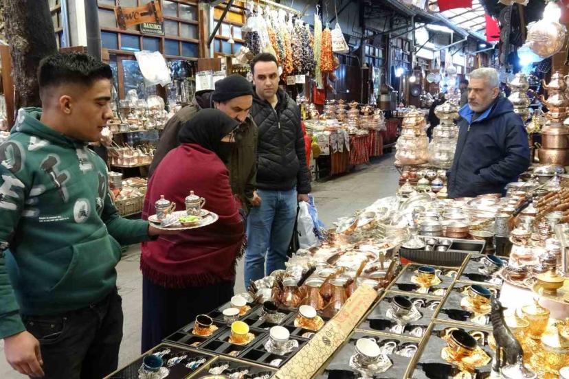 Bayram yaklaştıkça yoğunluklarının arttığını belirten bakır ustası Fikret Yılmaz ise, "Hafta sonu çarşı daha yoğun olur. Misafirlerimizde zaten bakır şekerlik, kahve cezvesi ve fincan takımı alıyor. Çünkü cezvede yapılan kahvenin tadı daha lezzetli oluyor. Çaydanlık, tencere ve diğer bakır ürünlere de bir talep var. Vatandaşlarımız bakır ürünleri hem evlerine alıyor hem de hediyelik olarak sevdiklerine hediye ediyor" diye konuştu.