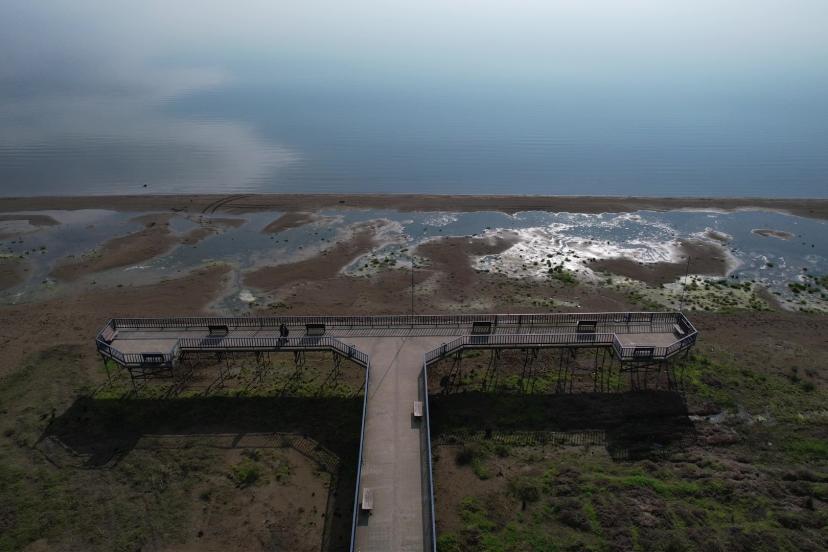 Göldeki su çekilmesi sonrası eski iskele yapısının altında vatandaşların yürüyebildiği, kıyı hattının gözle görülür şekilde geri çekildiği görüldü.