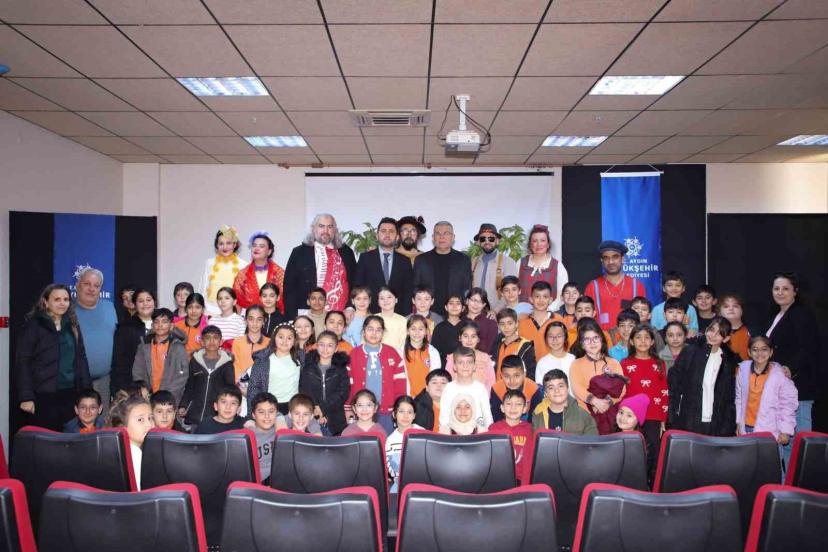 Aydın Büyükşehir Belediyesi Şehir Tiyatroları tarafından Köşk’te sahnelenen "Müzisyenler Çetesi" adlı tiyatro oyununda, çocuk...