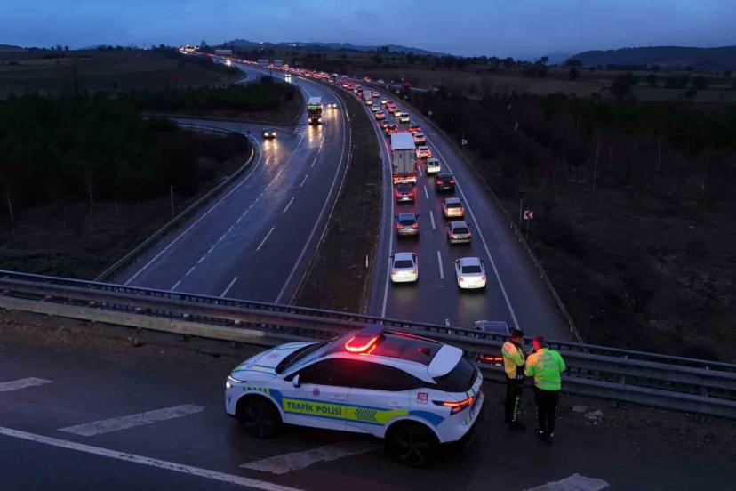 Bayram dönüşü çilesi: 30 kilometrelik araç kuyruğu havadan görüntülendi