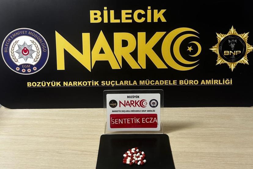 Edinilen bilgilere göre, Bilecik İl Emniyet Müdürlüğü Bozüyük Narkotik Suçlarla Mücadele Büro Amirliği ekiplerince uyuşturucu madde kullanımının ve ticaretinin önlenmesine yönelik çalışma gerçekleştirildi. Yapılan çalışmada şüpheli şahısların üzerinde ve yapılan kontrollerde muhtelif miktarda sentetik ecza maddesi ele geçirildi.