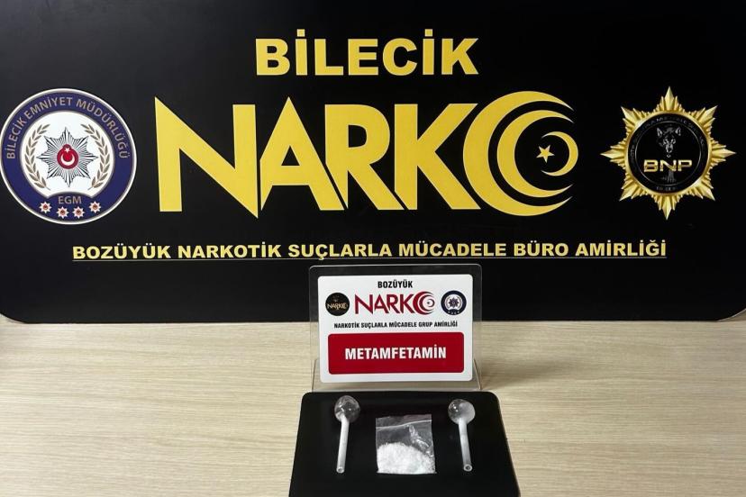 Edinilen bilgilere göre, Bilecik İl Emniyet Müdürlüğü Bozüyük Narkotik Suçlarla Mücadele Büro Amirliği ekiplerince uyuşturucu madde kullanımının ve ticaretinin önlenmesine yönelik çalışma gerçekleştirildi. Yapılan çalışmalarda şüpheli şahısların üzerinde ve yapılan kontrollerde muhtelif miktarlarda metamfetamin maddesi ile uyuşturucu madde kullanımında kullanılan 2 adet bong aparatı ele geçirildi.