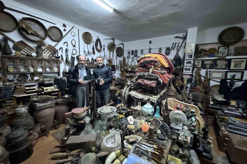 Taş el değirmeni, kömürlü ütü, gaz lambası, gaz ocağı, gece feneri, bakır kazan, tencere, tas, tava, ibrik, su küpleri, çanak-çömlek, beşik, elek, tırmık, kara saban, yayık, at ve eşek semeri, taş plak, gramofon, tüfek ve kılıç gibi 2 binden fazla çeşit eşya, sanat atölyesinin zemin katında oluşturulan mini etnografya müzesinde sergileniyor.