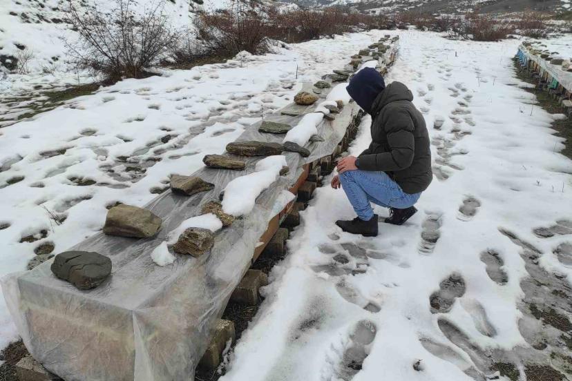 Batman’da arıcı Heybet Şahin Türkiye birinciliği ödülünü alan arılarını Mereto Dağının dondurucu soğuğundan korumak için yoğun mesai harcıyor.