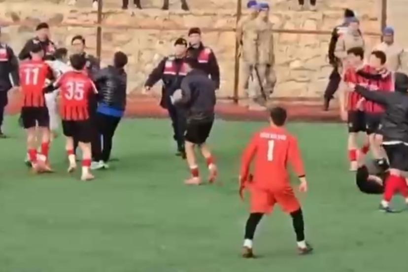 Süper Amatör Lig’de Belediye Bolvadin Termal Spor ile Susuz Belediyespor arasında oynanan rövanş karşılaşması, sahadaki mücadeleden çok maç sonunda yaşanan olaylarla gündeme geldi. Bolvadin temsilcisi, deplasmanda oynanan mücadeleyi 2-1 kazanarak kritik bir galibiyet elde etti. Karşılaşmanın bitiş düdüğünün ardından ortalık adeta savaş alanına döndü. Susuz Belediyesporlu bir futbolcunun Belediye Bolvadin Termal Spor Teknik Direktörü Fehmi Teke’ye yumruk atmasıyla başlayan olaylarda futbolcular birbirlerine tekme ve yumruklarla saldırırken, taraftarlar ise sahaya taşlar atarak kavgaya dahil oldular. Sahada hazır bekleyen jandarma ekipleri, coplarla olaya müdahale etti.