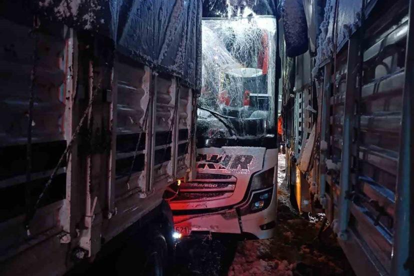Bitlis-Baykan karayolunda gece saatlerinde meydana gelen trafik kazasında yolcu otobüsü, önünde seyreden tıra arkadan çarptı.