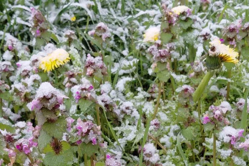 Bolu’nun Mudurnu ilçesinde bahar ayında açan çiçekler, etkili olan kar yağışıyla beyaza büründü.
