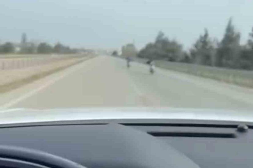 Karacabey-Bandırma karayolunda seyir halinde olan bir vatandaş tarafından cep telefonu ile kaydedilen görüntülerde, iki motosiklet sürücüsünün motosiklet üzerine yüzüstü uzanarak ilerlediği görüldü. Görüntüyü kaydeden aracın hız göstergesinde ise hızın yaklaşık 115 kilometre olduğu dikkat çekti.