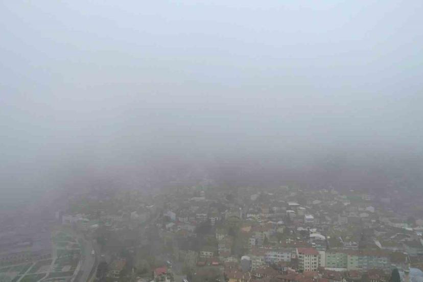 Sabahın ilk saatlerinde özellikle yamaç bölgelerde yoğun şekilde görülen sis tabakası, zamanla aşağı kesimlere doğru inerken şehir silüetini de kapladı. Kentin bazı noktalarında sisin oluşturduğu görüntü dikkat çekti.
