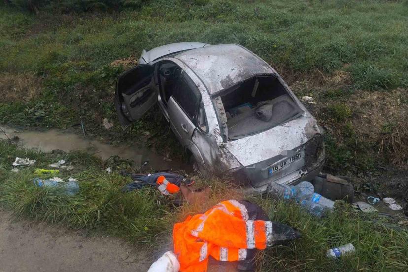Bursa’da taklalar atan otomobil tarlaya uçtu: 3 yaralı