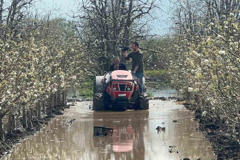 Armut bahçesine ilaçlama yapan üretici Turgay Koç ise yaşadıklarına zorluğa dikkati çekerek, "Traktörlere, bize, çiftçiye, meyve ağaçlarına yazık. 9 dönüm armut bahçemin büyük bölümü su altında. Bir hafta 10 gün su çekilmezse kurayacak. Önümüzdeki günler de yağışlı görünüyor, çaresisiz" diye konuştu.