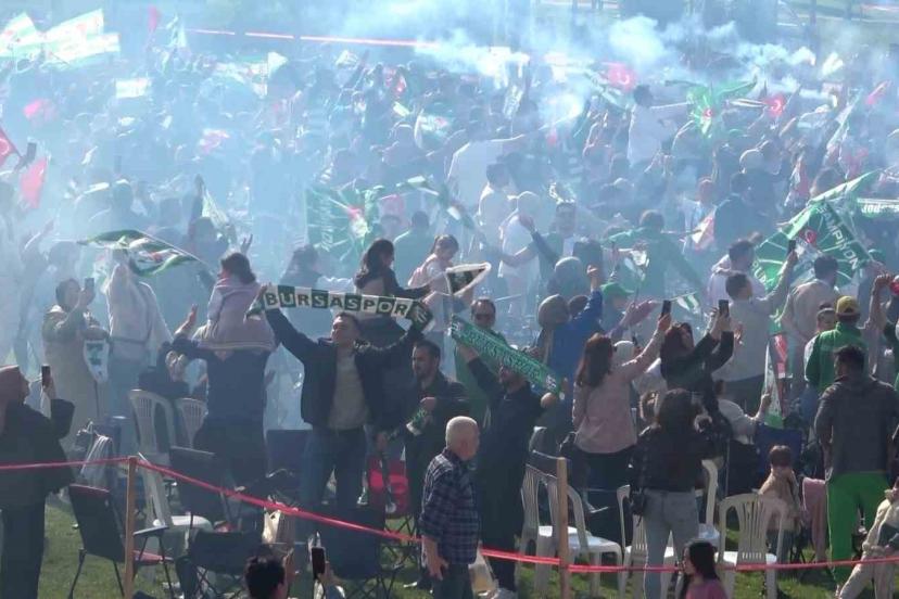 Millet Bahçesi ve Hüdavendigar Kent Parkı’nda toplanan Bursaspor taraftarları, maçı hep birlikte izleyerek şampiyonluk sevincini yaşadı. Maçın bitiş düdüğüyle birlikte ellerinde yeşil-beyaz bayraklarla meydanları dolduran taraftarlar, meşaleler yakarak şampiyonluğu kutladı.