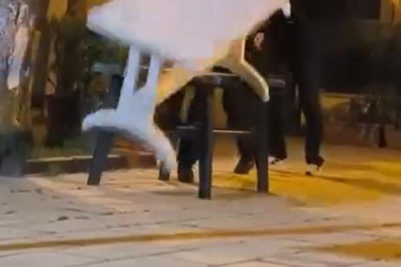 Küçükçekmece’de çocuklar bir caminin bahçesindeki masalara zarar verdi. Çocuklar polis ekipleri tarafından yakalanırken, yaşanan o anlar cep telefonu kamerasına yansıdı.