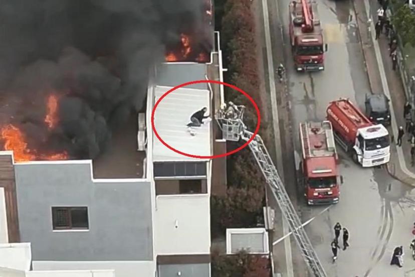 Öte yandan korku dolu anlar dron ile havadan görüntülendi. Görüntülerde çatı katını saran alevler ve gökyüzünü kaplayan yoğun duman dikkat çekti.