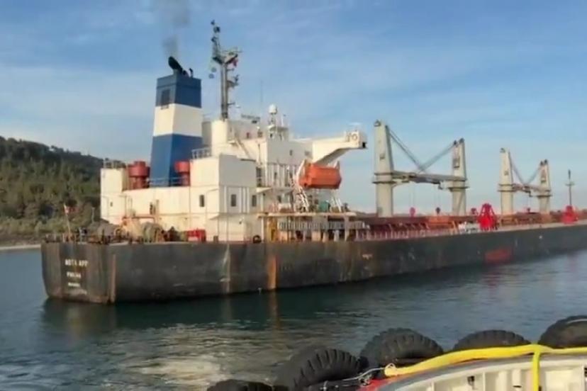Çanakkale Boğazı’ndan geçişi sırasında makina arızası yapan ’NOTA APP’ isimli dökme yük gemisi karaya oturdu.