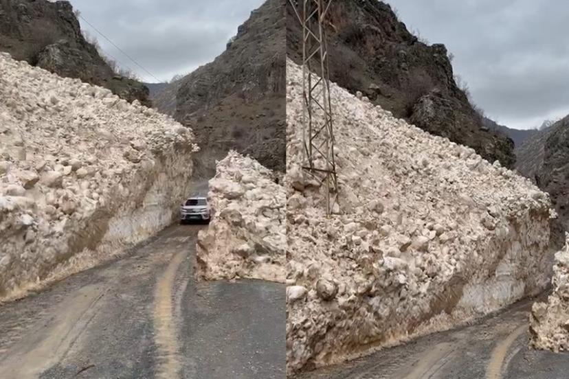 Araçların çığ tünelleri arasından geçişi ise yoldan geçen vatandaşlar tarafından cep telefonlarıyla görüntülendi.