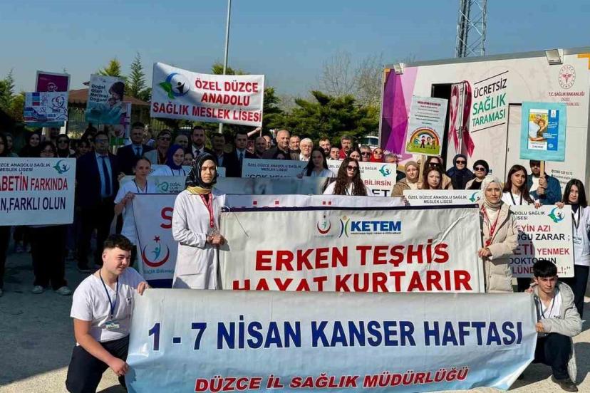 Çilimli İlçe Devlet Hastanesi ve Çilimli İlçe Toplum Sağlığı Merkezi öncülüğünde düzenlenen yürüyüşte, kanserde erken teşhisin önemi ve kalp sağlığına dikkat çekildi. Çilimli Kaymakamlığı önünden başlayan yürüyüş, İlçe Devlet Hastanesi’nde sona erdi. Programa, Çilimli İlçe Kaymakamı Furkan Alpay, Çilimli Belediye Başkanı Yılmaz Yıldız, ilçe protokolü, sağlık yöneticileri, kurum personelleri ve öğrenciler yoğun katılım sağladı.