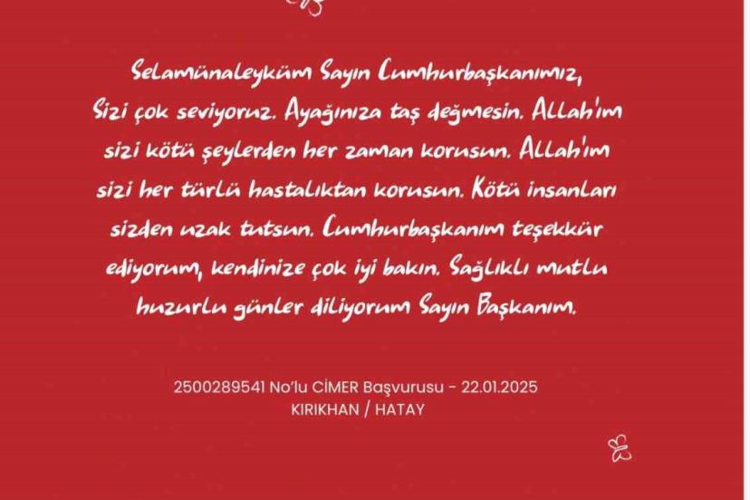 CİMER’e yapılan başvurularda bazı çocuklar ‘Doğumuma kim yardım etti öğrenmek istiyorum’, ‘Ailemde şehit ya da madalya alan biri var mı?’ gibi sorular yöneltirken, bazı çocuklar ise somut proje önerilerini paylaştı. Bir çocuk, ambulans ve itfaiye araçlarının trafik ışıklarını otomatik olarak kontrol edebileceği bir sistem önerisinde bulunurken, bir diğeri deniz akıntılarından enerji üretimine yönelik fikirlerini sıraladı. Bir başka çocuk yaz aylarında yaşanan boğulma vakalarına karşı nehir kenarlarında güvenli yüzme alanları oluşturulmasını isterken, okullarda bölgesel sorunlara yönelik proje çalışmaları yapılması önerisi de getirildi. ‘Sizin gibi polis olmak istiyorum’ diyerek hayalini paylaşan çocukların yanında, tedavi sürecinde kendisine destek olan sağlık çalışanlarına teşekkür mesajını ileten, öğretmenlerine teşekkür mesajları yazan çocukların da olduğu belirtildi.