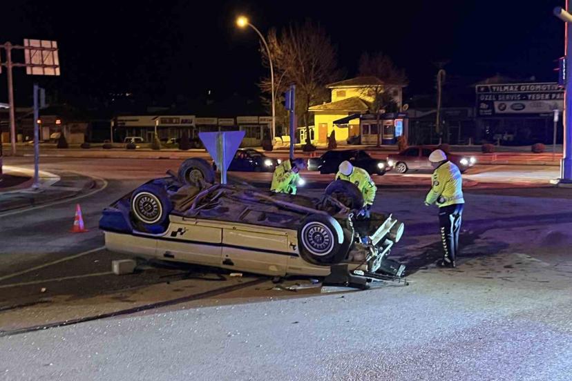Çorum’da otomobil ile kavşakta çarpıştıktan sonra takla atan aracın sürücüsü yaralandı.