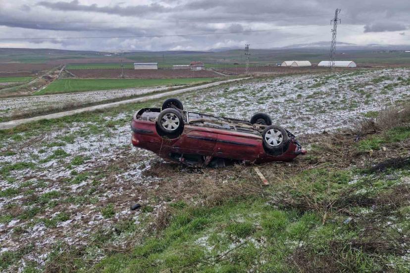Çorum’un Alaca ilçesinde gizli buzlanma sebebiyle şarampolde yuvarlanan otomobildeki 3 kişi yaralandı.