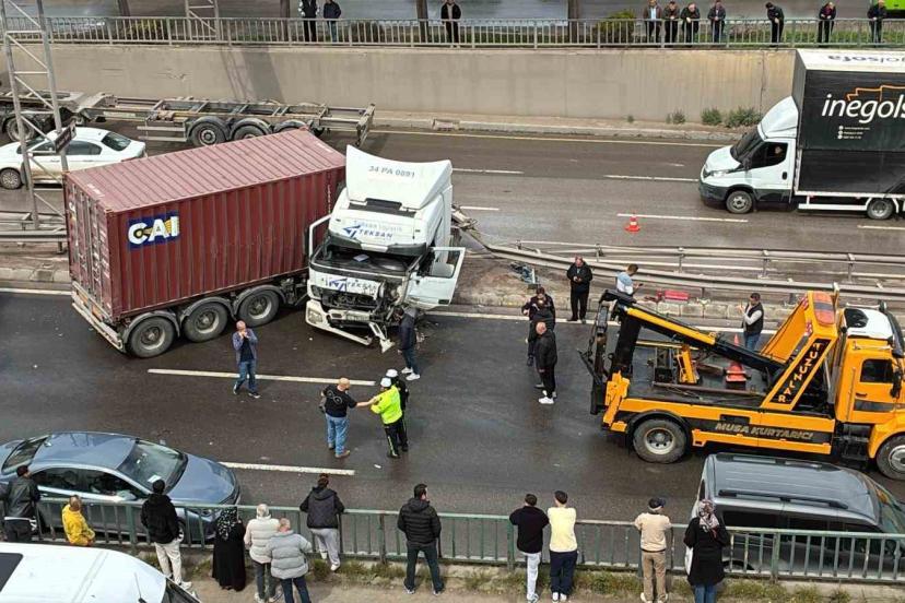 Kocaeli’nin Derince ilçesinde kontrolden çıkarak makaslayan tır, bariyerleri aşıp karşı şeride geçti. İki otomobilin daha karıştığı kaza sebebiyle D-100 kara yolunda kilometrelerce araç kuyruğu oluştu.