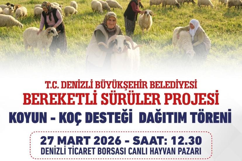 Dağıtım töreni, 27 Mart 2026 Cuma günü saat 12.30’da Denizli Ticaret Borsası Canlı Hayvan Pazarı’nda düzenlenecek. Hak sahipleri, törende hayvanlarını kura çekimi ile seçerek teslim alacak.