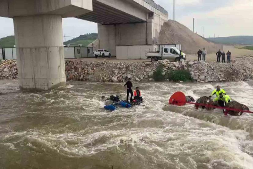 Bursa’nın Yenişehir ilçesinde Kocasu Deresi’nden traktörle karşıya geçmek isteyen 10 işçinin bulunduğu traktör, suyun ortasında devrildi. Akıntının etkisiyle dengesini kaybeden traktördeki işçiler dere içinde mahsur kaldı.