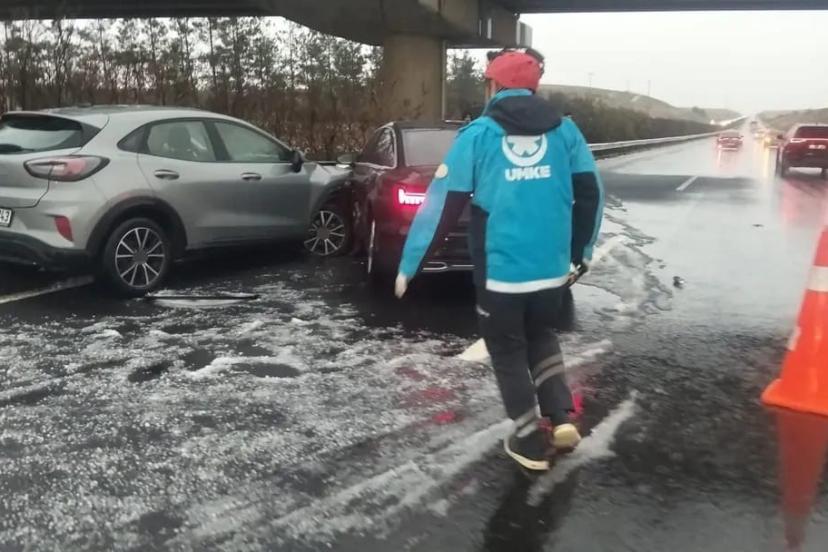 Dolu yağışı zincirleme kazaya neden oldu: 11 yaralı