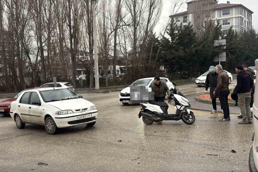 Bolu’da yağmur yağışı sebebiyle kayganlaşan yolda motosiklet ile otomobil çarpıştı. Meydana gelen kazada motosiklet sürücüsü hafif şekilde yaralandı.