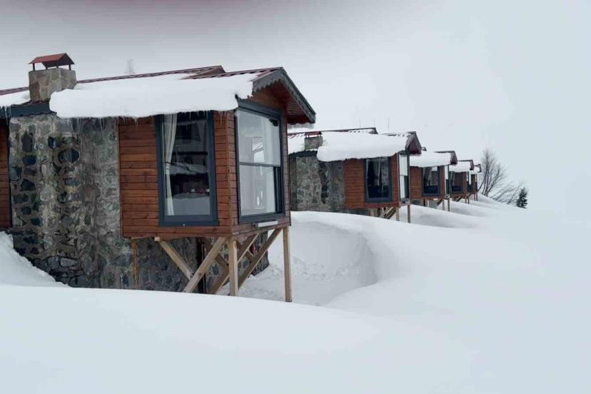 Rize’de nisan ayında yağan karla beyaza bürünen Handüzü Yaylası kendisine hayran bırakıyor.