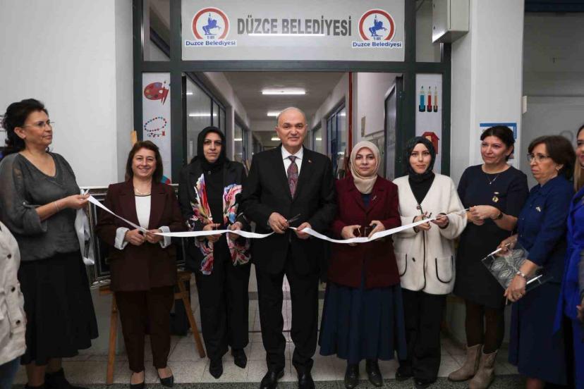 Düzce Belediye Başkanı Dr. Faruk Özlü, BELMEK Resim branşı kursiyerleri tarafından hazırlanan serginin açılışına katıldı. "At...