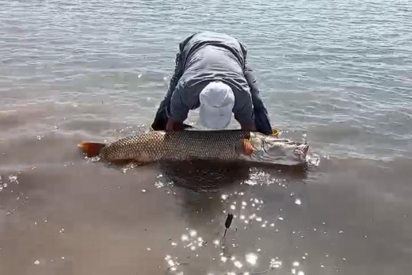 Elazığ’da amatör balıkçılar 65 kilo ağırlığında turna balığı yakaladı