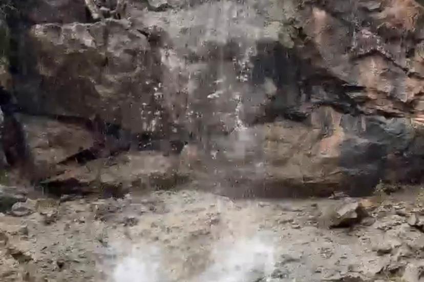 Elazığ’ın Arıcak ilçesine bağlı Kambertepe köyünde yağmur suları kayalıklardan süzülerek adeta doğal şelale oluşturdu.
