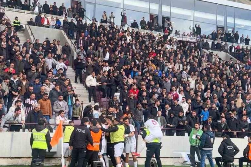 Nesine 2. Lig Beyaz Grup’un 36. haftasında Elazığspor evinde Erbaaspor’u 3-0 mağlup etti. Maçın ilk golünde Elazığspor’un defans oyuncusu Ercan Coşkun, sevincini bir polis memurunun sırtına atlayarak yaşadı.