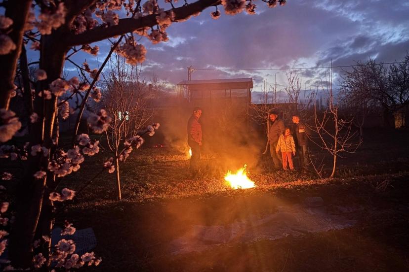 Baharın gelişiyle birlikte kayısı başta olmak üzere elma, kiraz ve diğer meyve ağaçlarının çiçek açtığı kentte, ani sıcaklık düşüşleri üreticileri endişelendiriyor. Gece boyunca bahçelerinde nöbet tutan çiftçiler, farklı noktalarda kontrollü ateşler yakarak oluşan ısı ve duman sayesinde ağaçların zarar görmesini önlemeye çalışıyor.