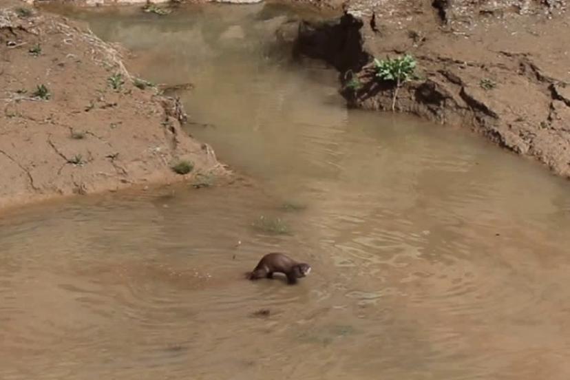 Nesli tehdt altındaki su samuru, Erzurum’un Olur ilçesi Ormanağzı köyünde görüntülendi.
