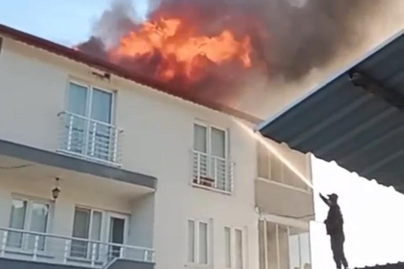 Bacadan başladığı öğrenilen yangın, rüzgarın da etkisiyle kısa sürede tüm çatıya yayıldı. Alevlere teslim olan çatı, ekiplerin yaklaşık 1 saatlik yoğun çalışması sonucu kontrol altına alındı. Yangın sonrası tamamen yanan çatıda büyük çapta maddi hasar meydana geldi.