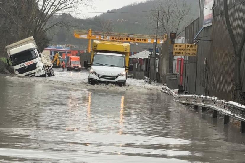 İstanbul Eyüpsultan Ayazağa Cendere yolu yağmur nedeniyle göle döndü. Bazı sürücüler yolda kaldı. Tırlar ve hafriyat kamyonları da göle dönen yolda ilerlemekte güçlük çekti. Sürücüsünün kontrolünden çıkan bir hafriyat kamyonunun da yan yattığı görüldü. Olay yerine gelen ekipler hafriyat kamyonunu kurtarmak için çalışma başlattı.