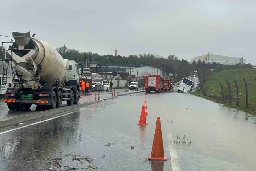 Eyüpsultan’da servis aracı su dolu kanalda yan yattı
